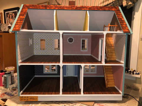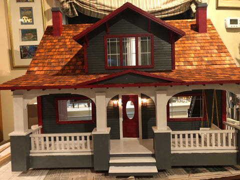 All of our dollhouses are made from plywood, used for floors and walls, MDF, which is typically found in kits, and strip wood for finishing. Decorative shingles are stained for roofs. The replica colors used will be matched as closely as possible.